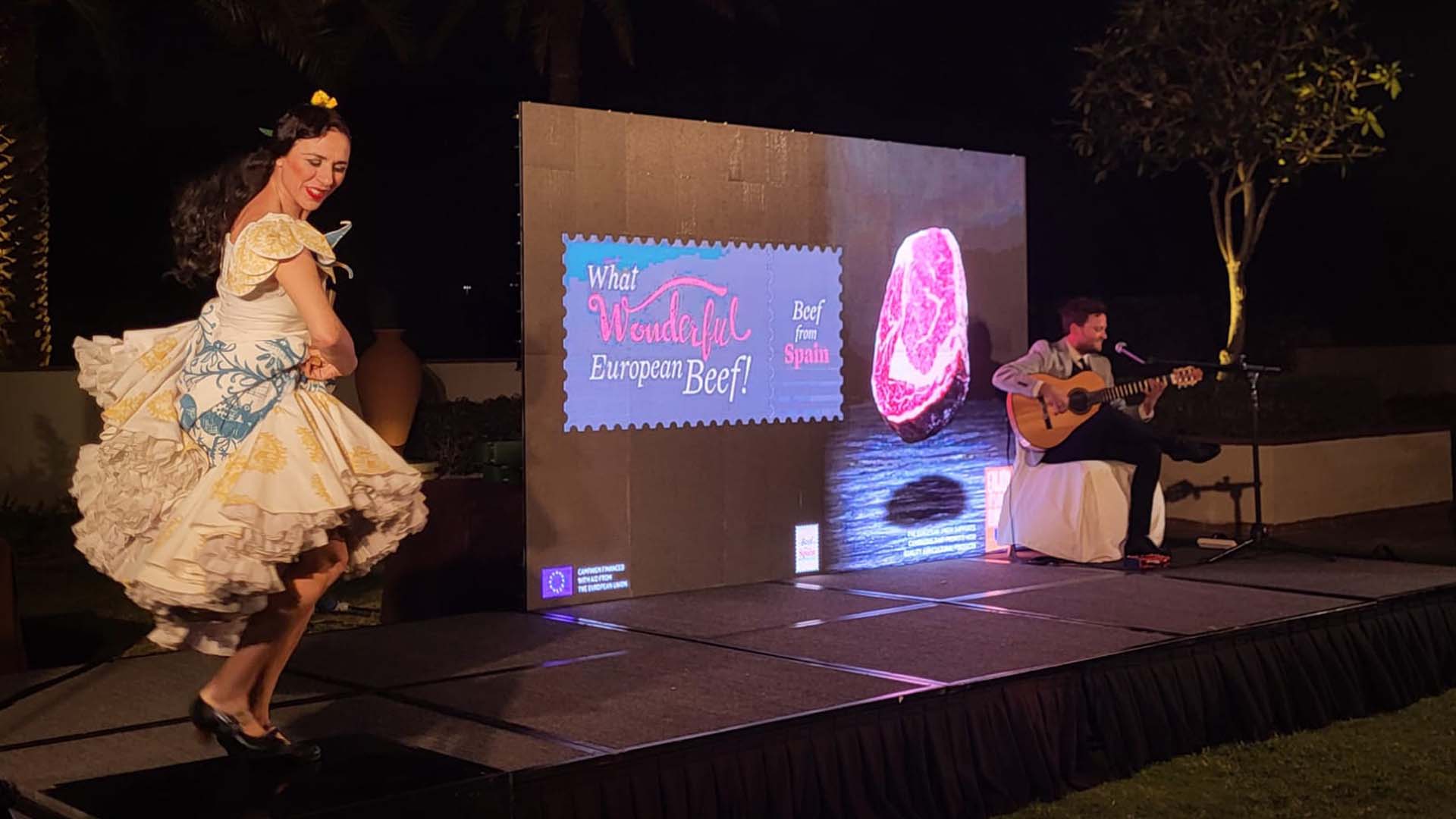 شهدت الفعالية الحصرية والتي اقيمت في فندق وفيلات بارك حياة أبوظبي مشاركة 70 شخصية من قطاع اللحوم المحلي، مما أبرز إمكانات لحم البقر الأوروبي من إسبانيا في الإمارات العربية المتحدة. وقدمت الفعالية التزامًا مشتركًا بالجودة والطعم والابتكار الطهوي، وقدمت فرصة أخرى لعرض النموذج الإنتاجي الأوروبي الفريد. وكان للحضور فرصة تذوق ثلاثة أطباق مختلفة من لحم البقر المعدة حصرياً من قبل الشيف خوانلو فرنانديز الحاصل على نجوم ميشلان. بصفة عامة، كانت الفعالية ناجحة للغاية وأثارت اهتماماً كبيراً بين الضيوف.
